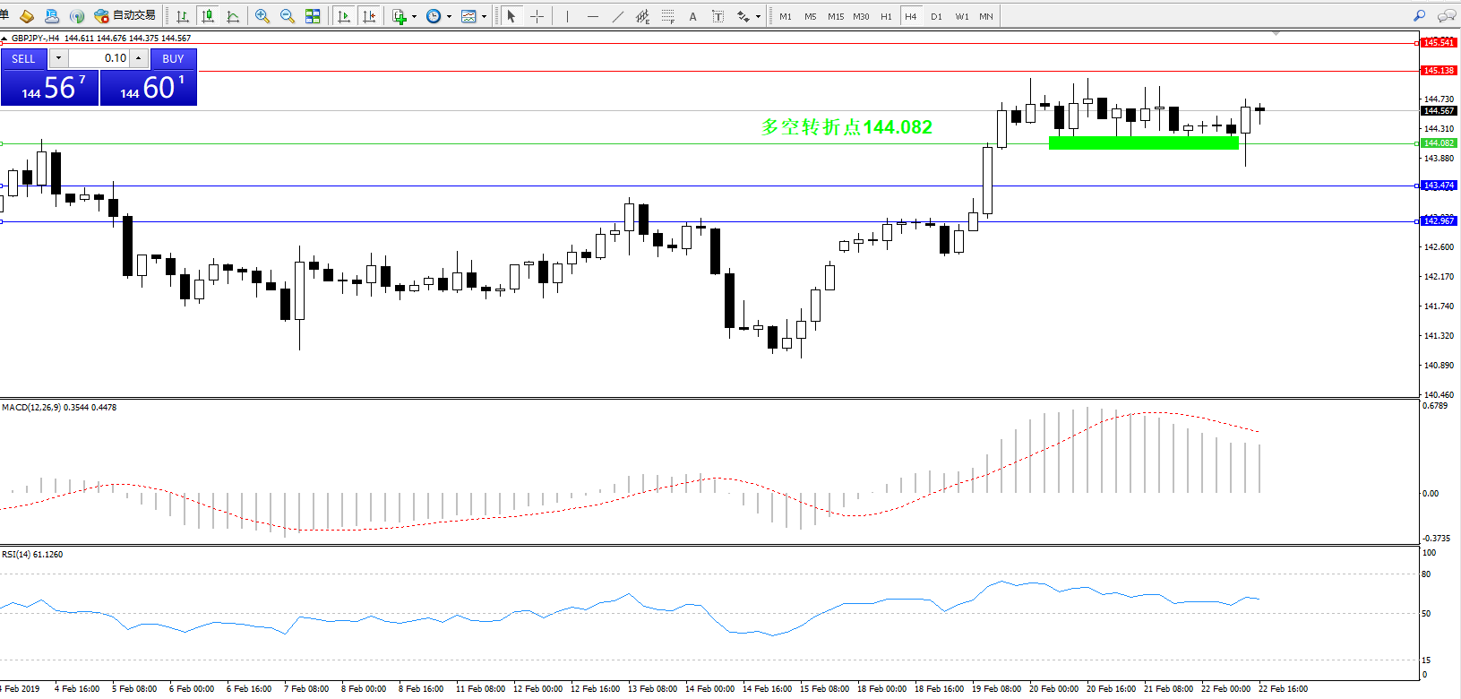 交易策略:144.082上方看涨,目标145.138、145.541