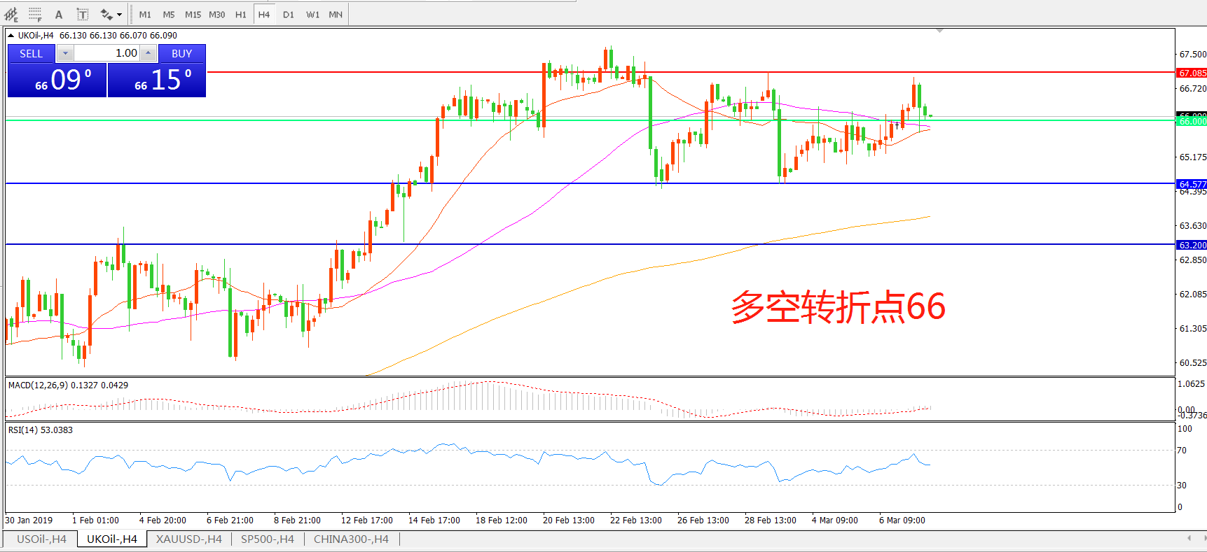 多空转折点:66.00