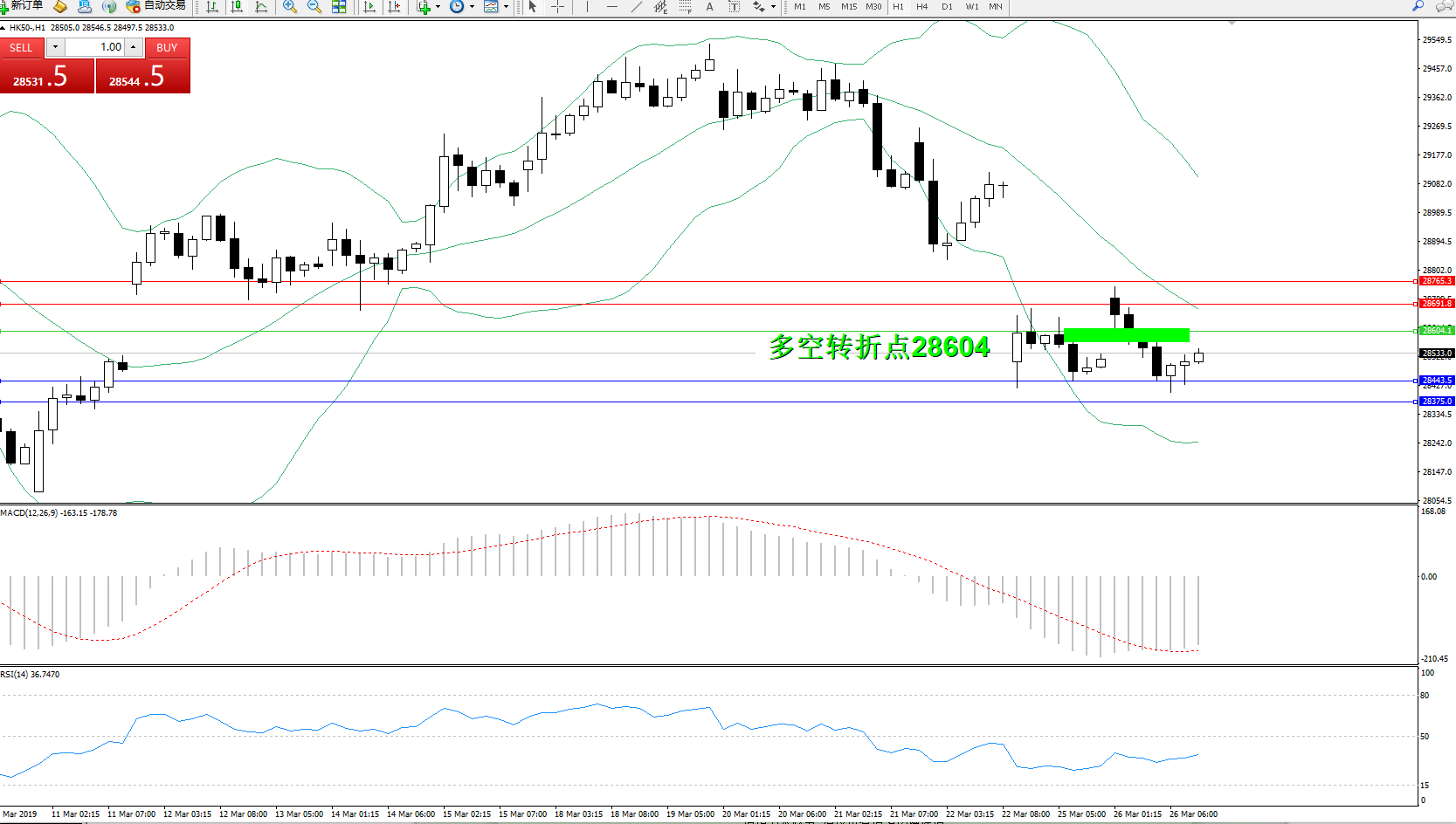 交易策略:28604下方看跌,目标28443、28375