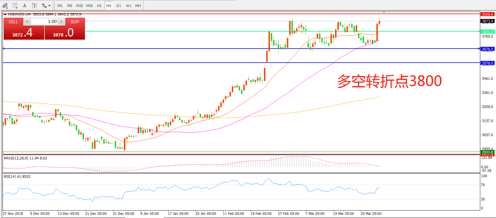 多空转折点:3800.00
