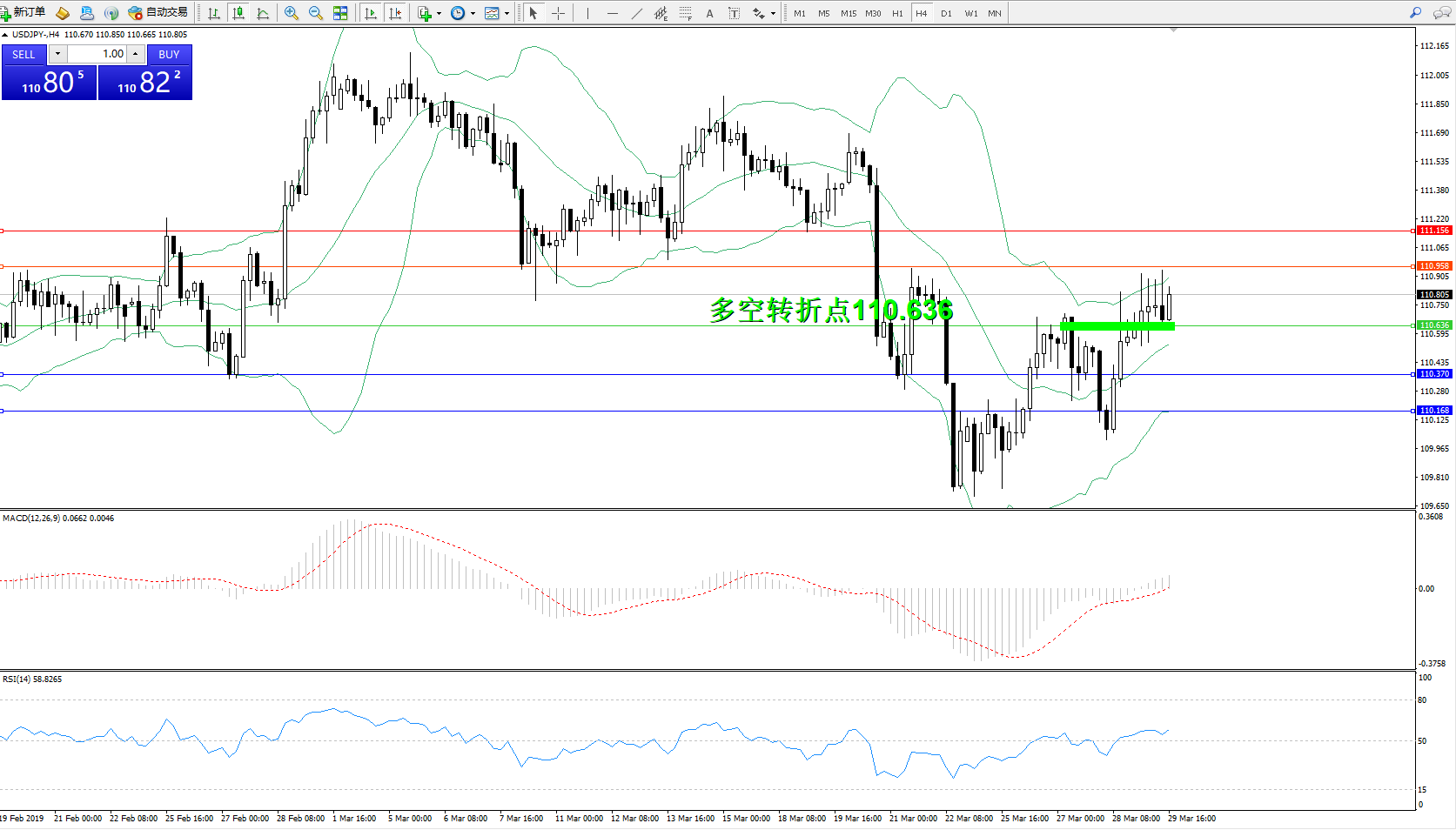 交易策略:110.636上方看涨,目标110.958111.156