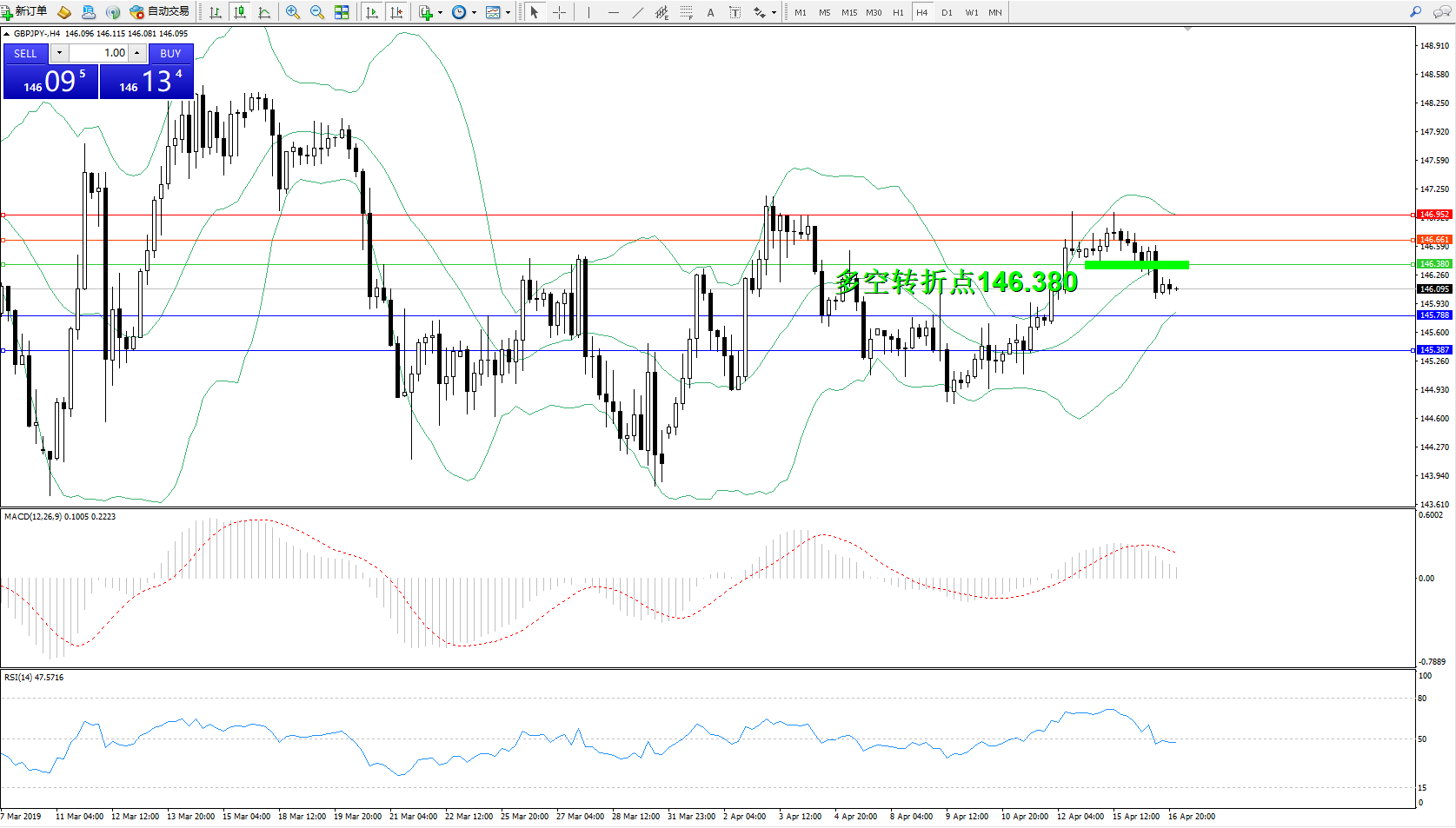交易策略:146.380下方看跌,目标145.788、145.387