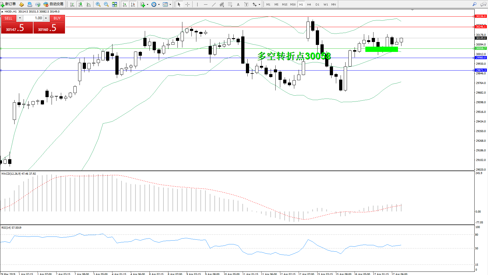 交易策略:30058上方看涨,目标30246、30336