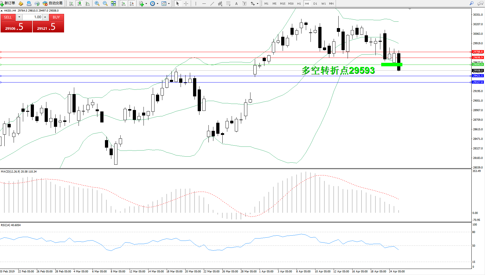 恒指HK50 ——4小时K线图显示: