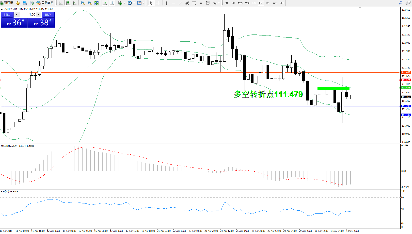 交易策略:111.479下方看跌,目标111.248、111.138