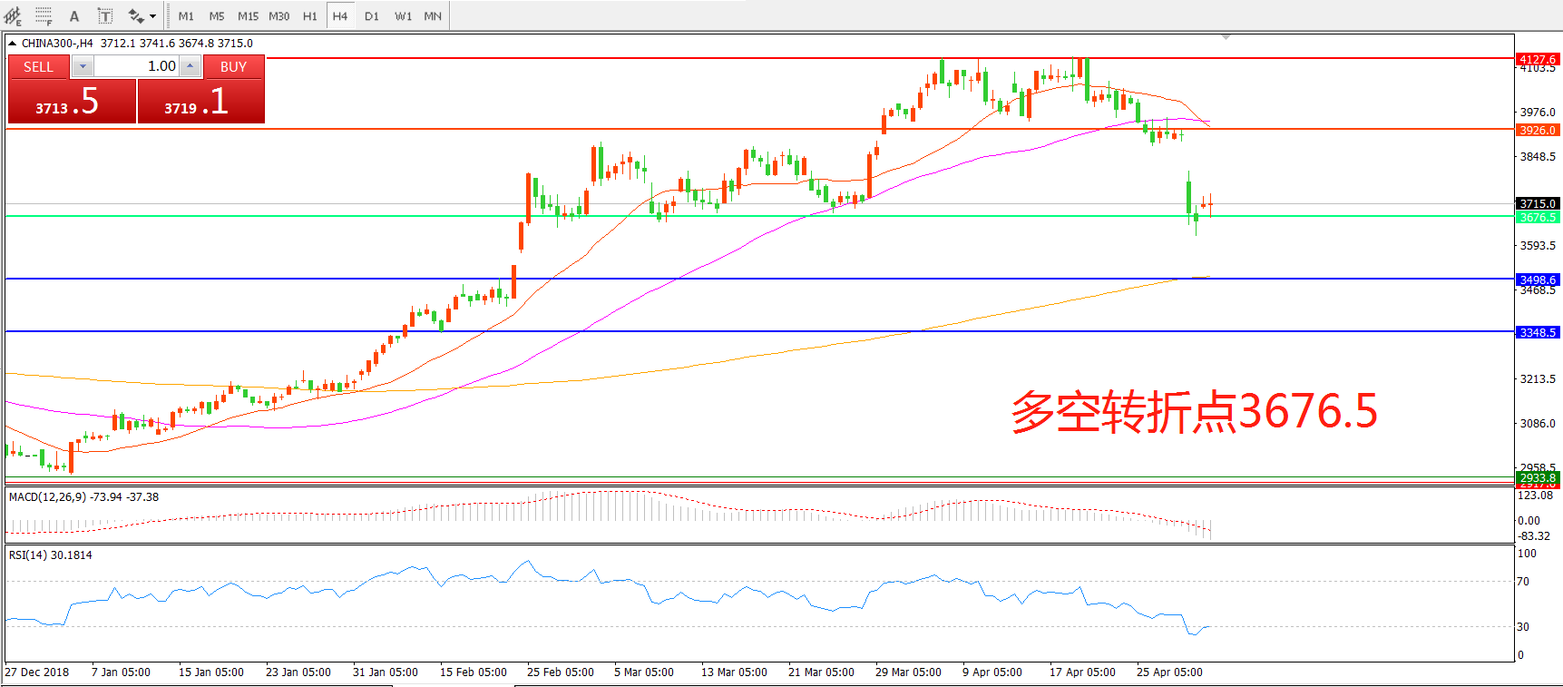 多空转折点:3676.50
