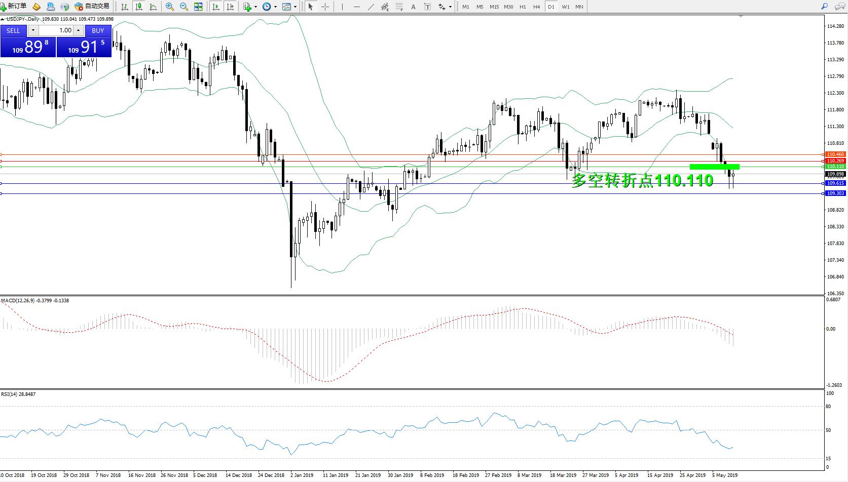 交易策略:110.110下方看跌,目标109.615、109.303