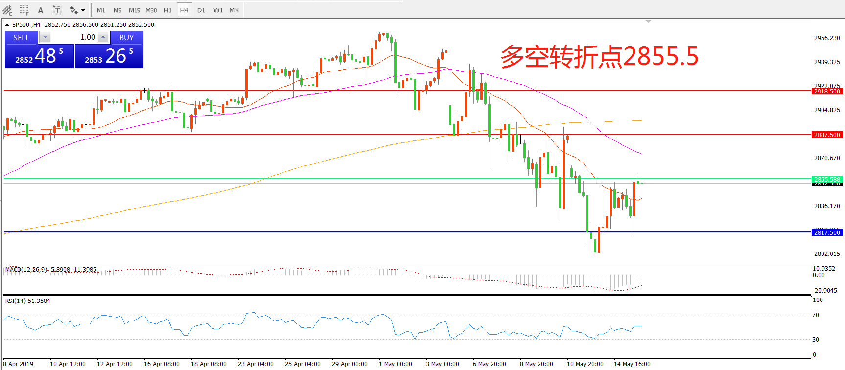 多空转折点:2855.50