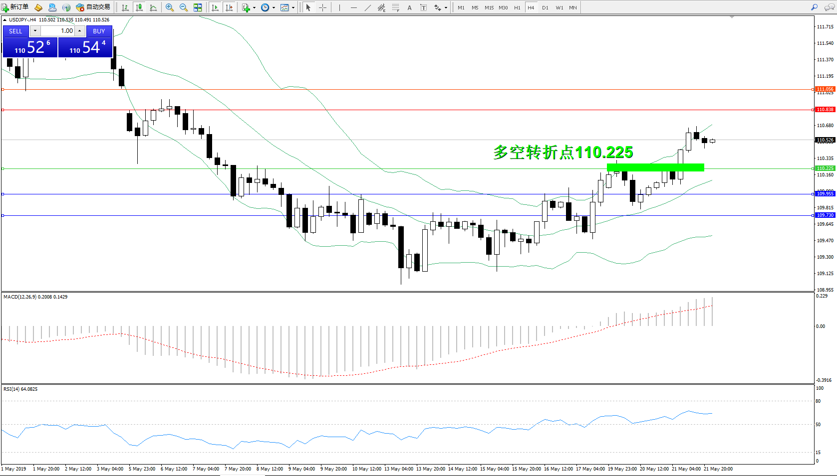 交易策略:110.225上方看涨,目标110.838、111.056