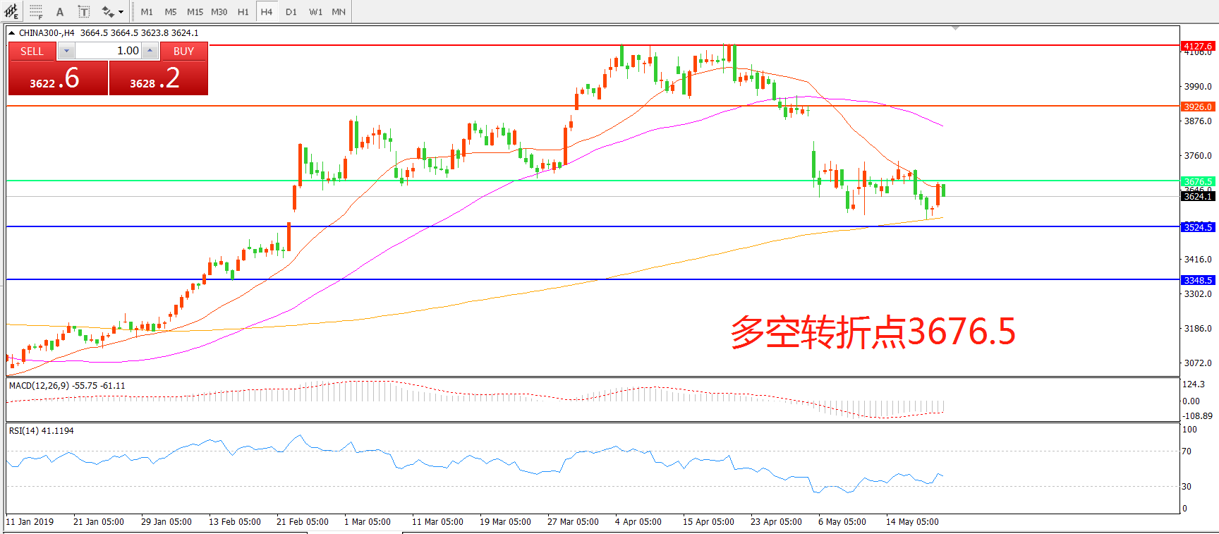 沪深300指数CHINA300 4小时图