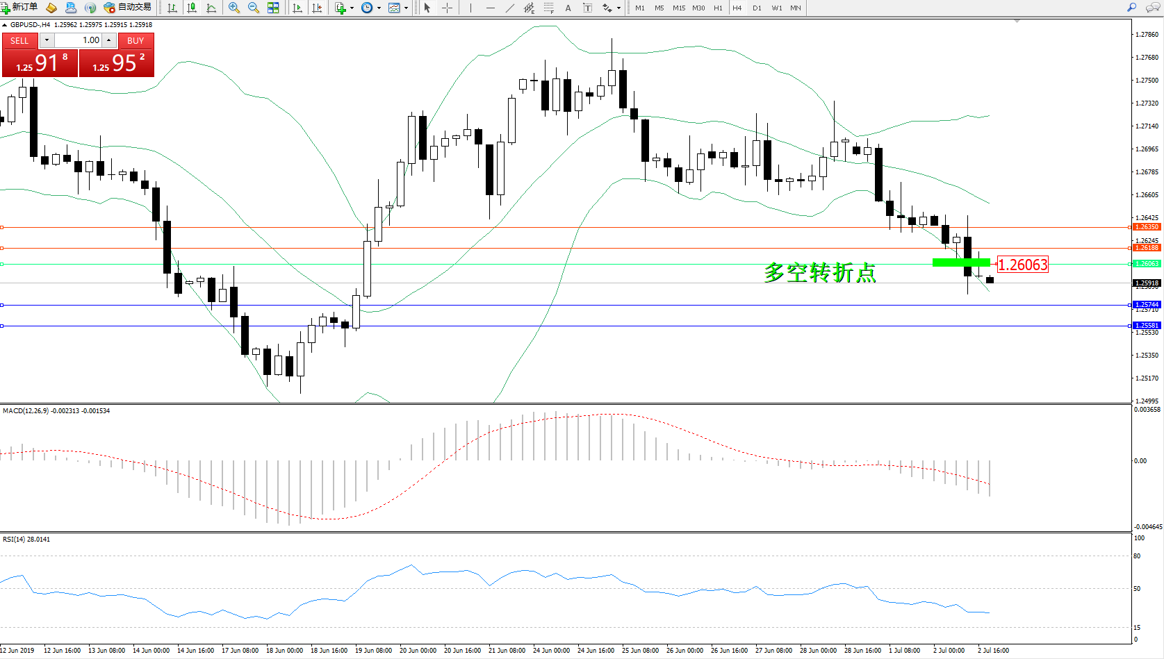 交易策略:1.26063下方看跌,目标1.25744、1.25581