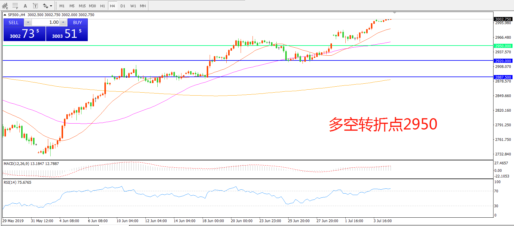 多空转折点:2950.00