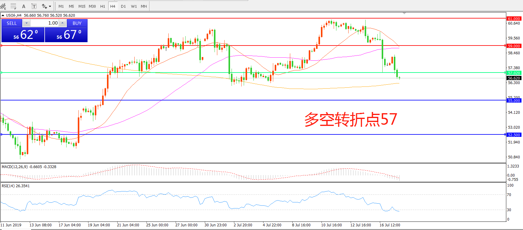 多空转折点:57.00