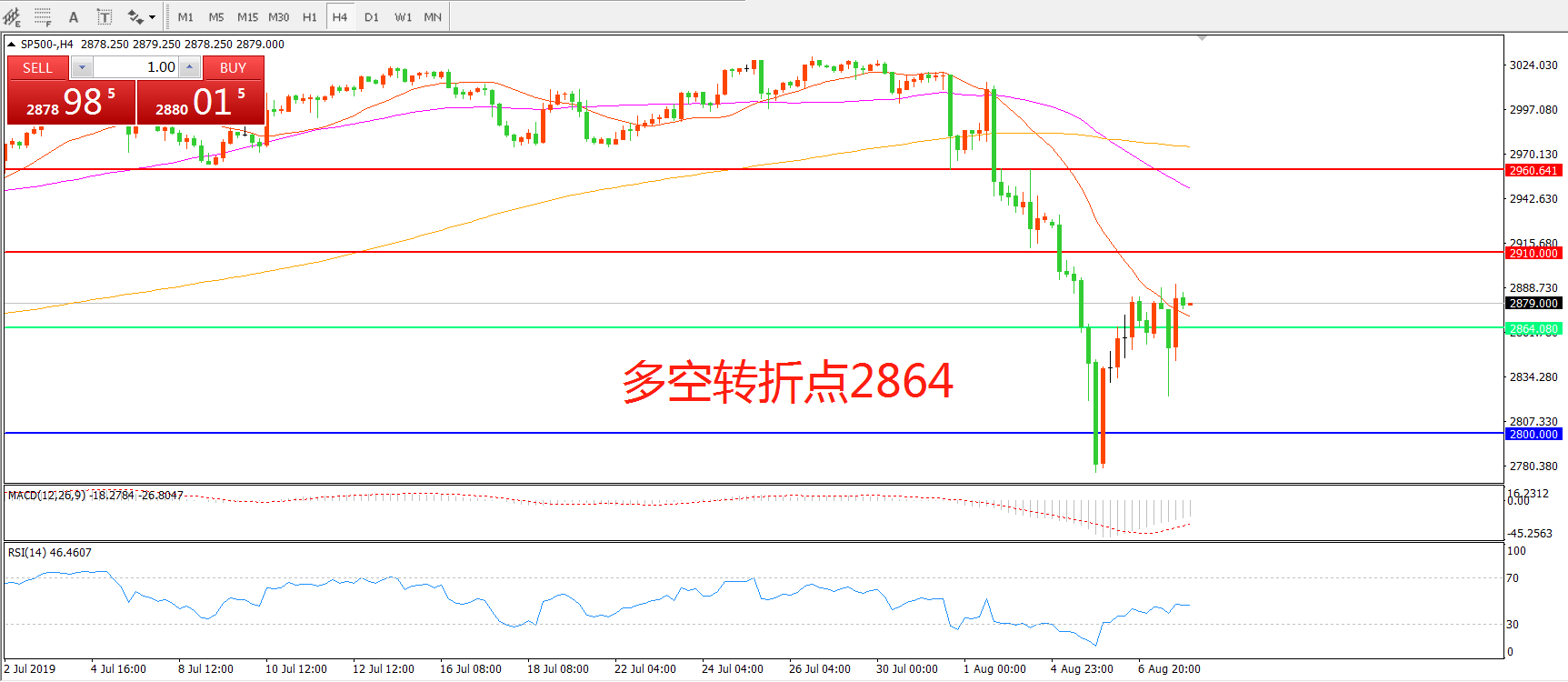 多空转折点:2864.00