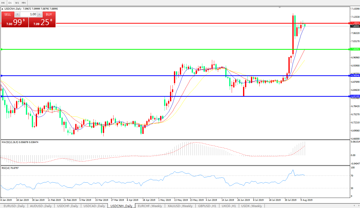 美元兑人民币USDCNH   日线图: