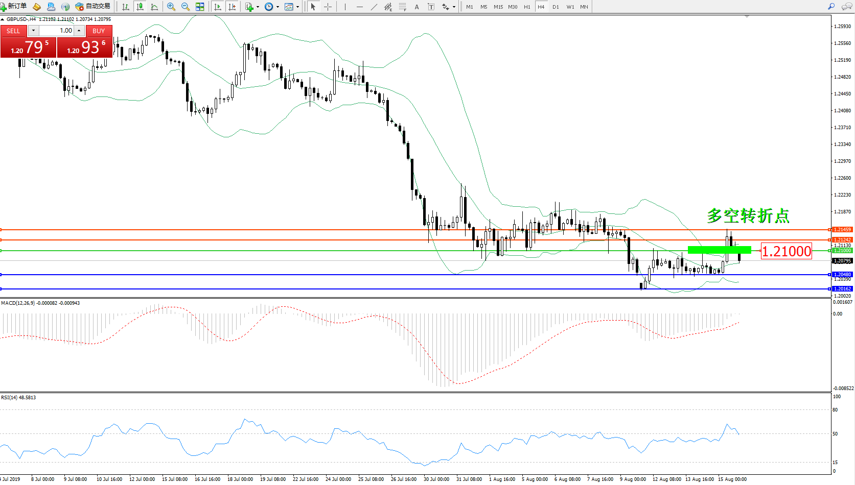 交易策略:1.21000下方看跌,目标1.204801.20162