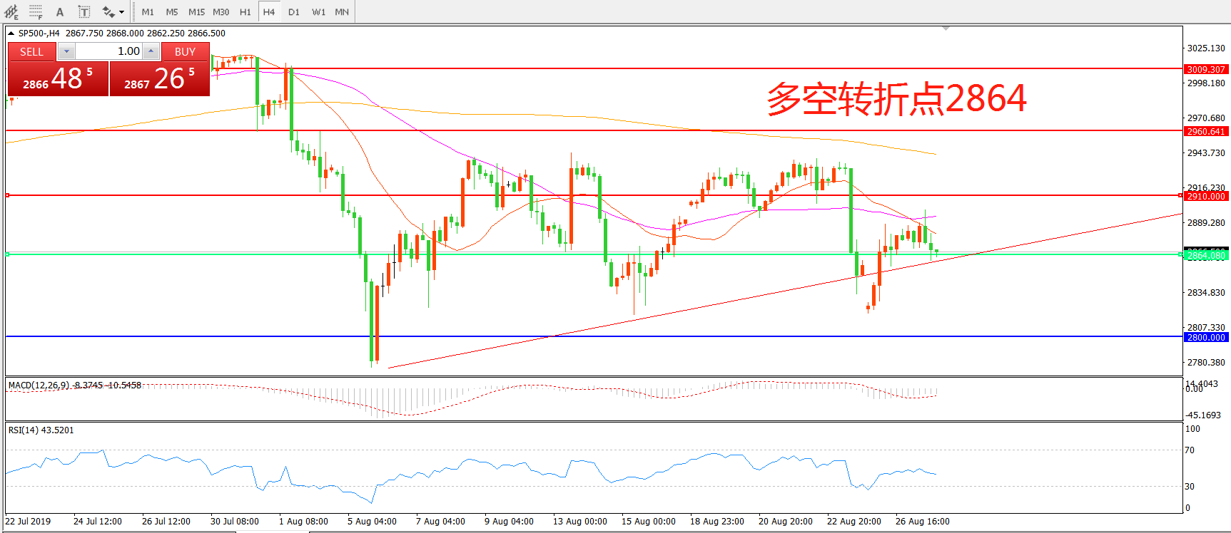 多空转折点:2864.00
