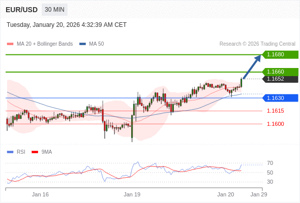 在 1.1630 之上,看涨,目标价位为 1.1660 ,然后为 1.1680 。