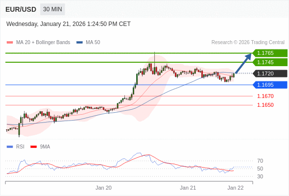 在 1.1695 之上,看涨,目标价位为 1.1745 ,然后为 1.1765 。