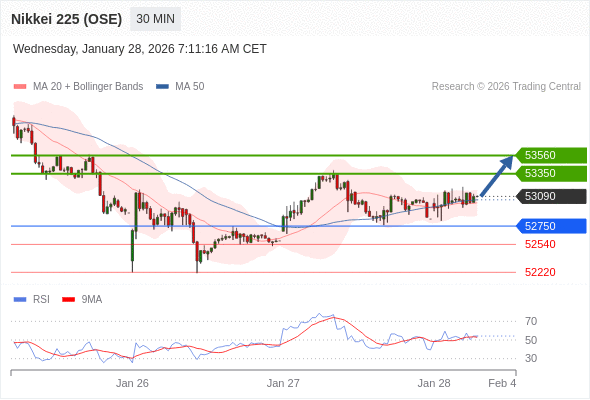 在 52750 之上,看涨,目标价位为 53350 ,然后为 53560 。