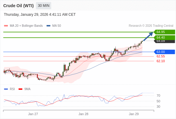 在 63.00 之上,看涨,目标价位为 64.40 ,然后为 64.95 。