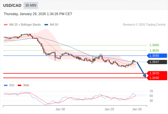 在 1.3590 之下,看跌,目标价位为 1.3470 ,然后为 1.3440 。