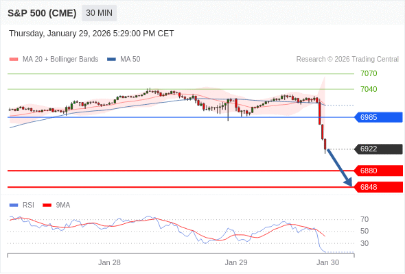 在 6985 之下,看跌,目标价位为 6880 ,然后为 6848 。