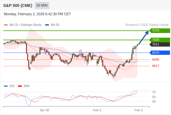 在 6975 之上,看涨,目标价位为 7030 ,然后为 7070 。