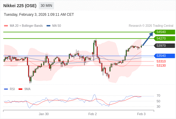 日经225股指期货 (OSE) 当日内: 目标位为54540。