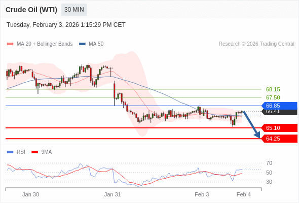 美国原油 (WTI) 期货 (H6) 当日内: 谨慎操作。