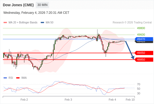 在 49470 之下,看跌,目标价位为 49050 ,然后为 48850 。