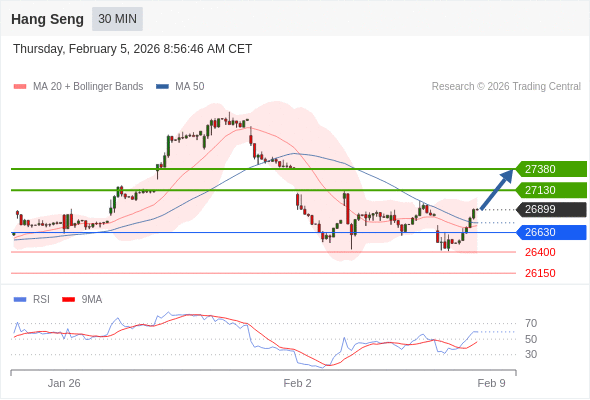在 26630 之上,看涨,目标价位为 27130 ,然后为 27380 。