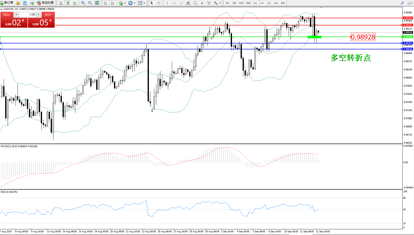 美元瑞郎USDCHF——4小时K线图显示: