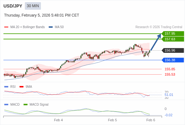 替代方案: 在156.38以下,期待155.85和155.53。