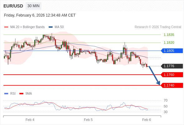 在 1.1805 之下,看跌,目标价位为 1.1760 ,然后为 1.1740 。