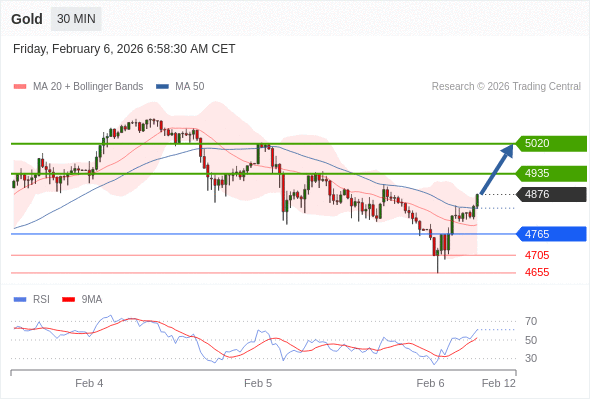 在 4765 之上,看涨,目标价位为 4935 ,然后为 5020 。