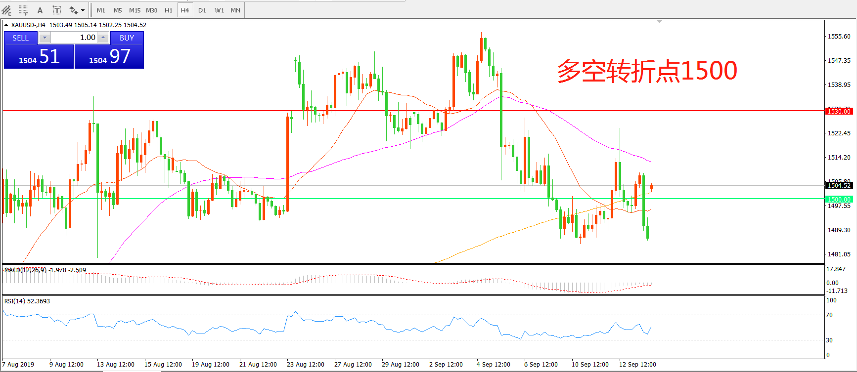 多空转折点:1500.00