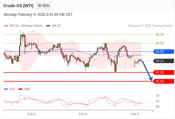 在 63.85 之下,看跌,目标价位为 62.20 ,然后为 61.50 。