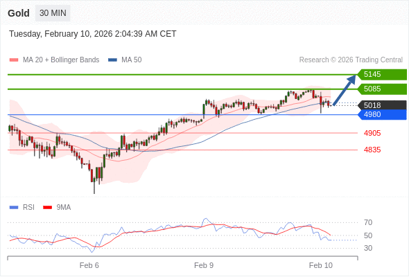 在 4980 之上,看涨,目标价位为 5085 ,然后为 5145 。
