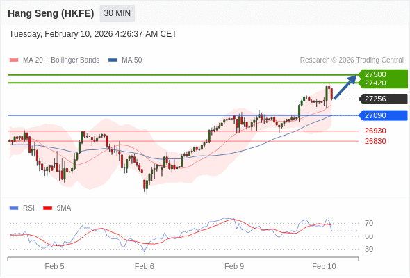 在 27090 之上,看涨,目标价位为 27420 ,然后为 27500 。