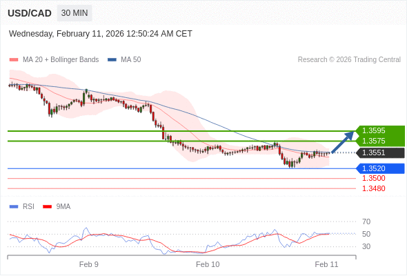 在 1.3520 之上,看涨,目标价位为 1.3575 ,然后为 1.3595 。