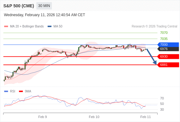 在 7000 之下,看跌,目标价位为 6930 ,然后为 6881 。