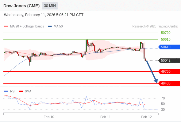 在 50410 之下,看跌,目标价位为 49750 ,然后为 49430 。