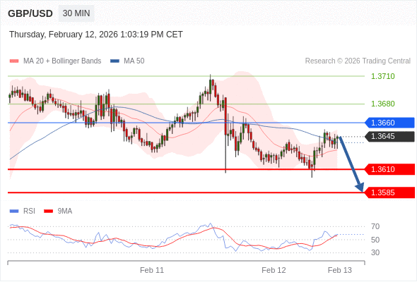 在 1.3660 之下,看跌,目标价位为 1.3610 ,然后为 1.3585 。