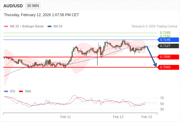 交易策略: 在 0.7145 之下,看跌,目标价位为 0.7095 ,然后为 0.7065 。