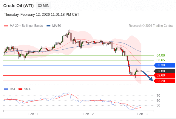 在 63.30 之下,看跌,目标价位为 62.60 ,然后为 62.20 。