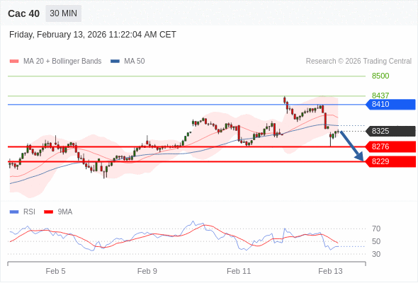 Cac 40 当日内: 短期关键阻力位在8410。