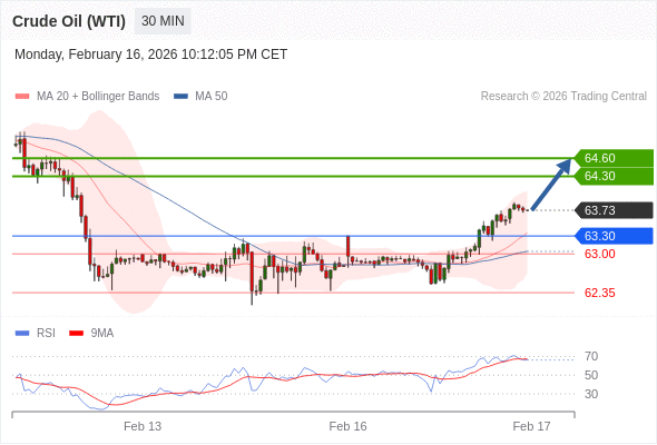 在 63.30 之上,看涨,目标价位为 64.30 ,然后为 64.60 。