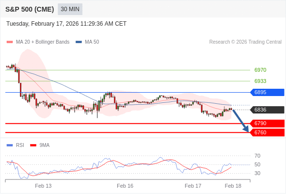 美国标普500指数期货 (H6) 当日内: 短期关键阻力位在6895。