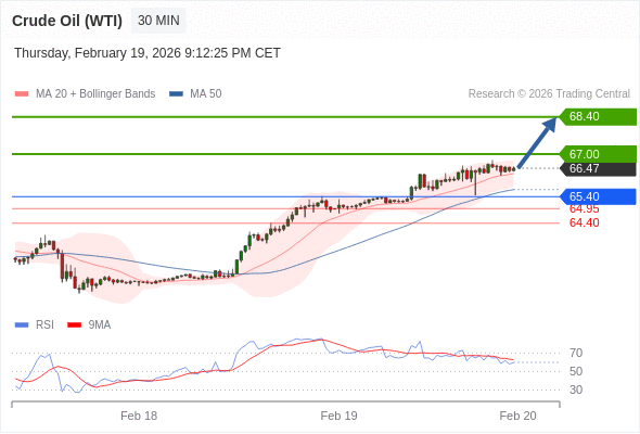 在 65.40 之上,看涨,目标价位为 67.00 ,然后为 68.40 。